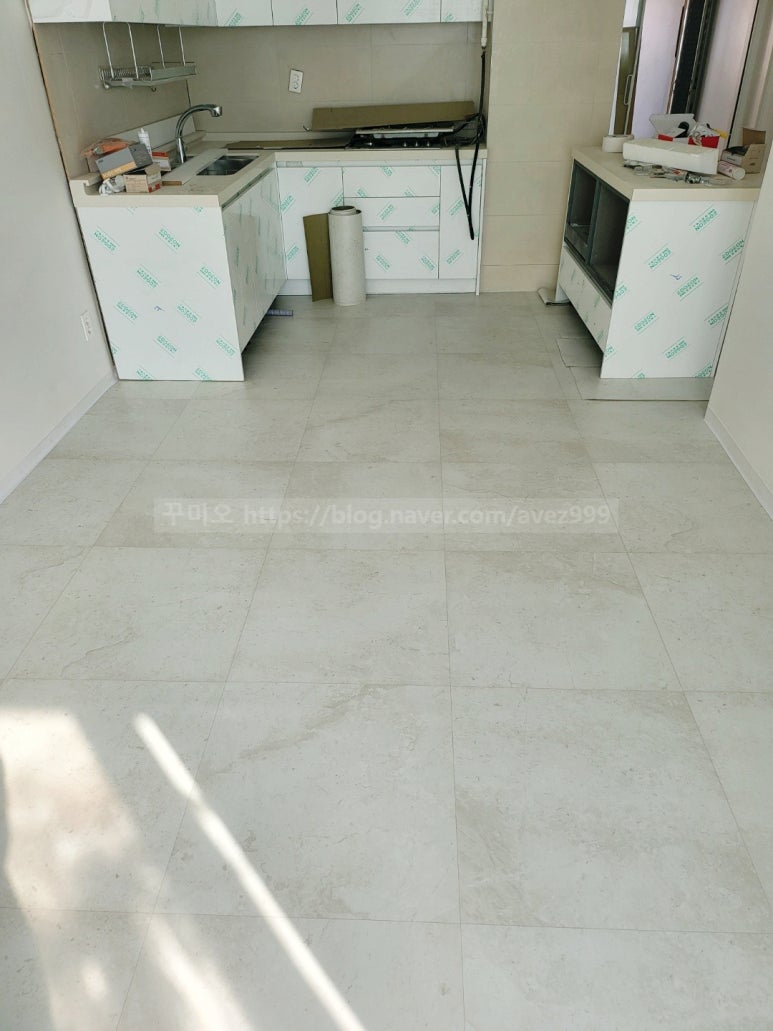 LX하우시스 친환경장판 지아자연애2.2 ZJ43591 화이트마블과천 사각장판시공이번 과천장판시공 세대는 위 사진의 바닥면을 빛비침에 보시면그나마 맨질맨질 하지만...